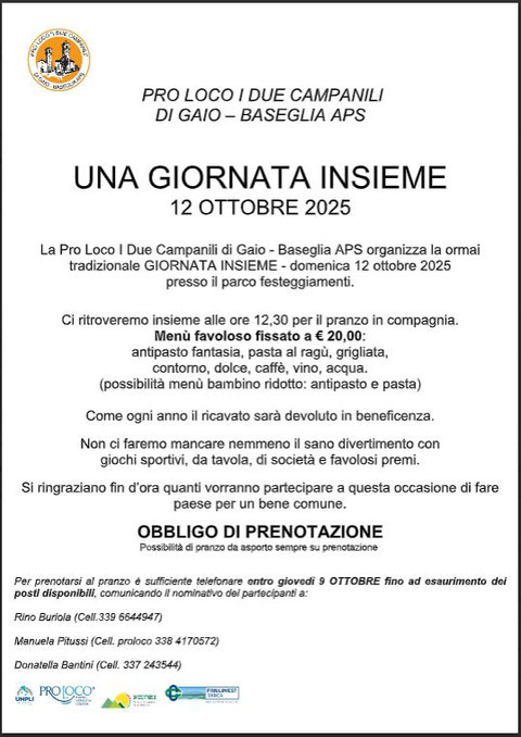 Sempre attesa tra gli eventi nell'arco dell'anno la tradizionale giornata con il pranzo insieme organizzata dalla Pro Loco "I Due Campanili", una buona occasione per trascorrere una giornata in compagnia.